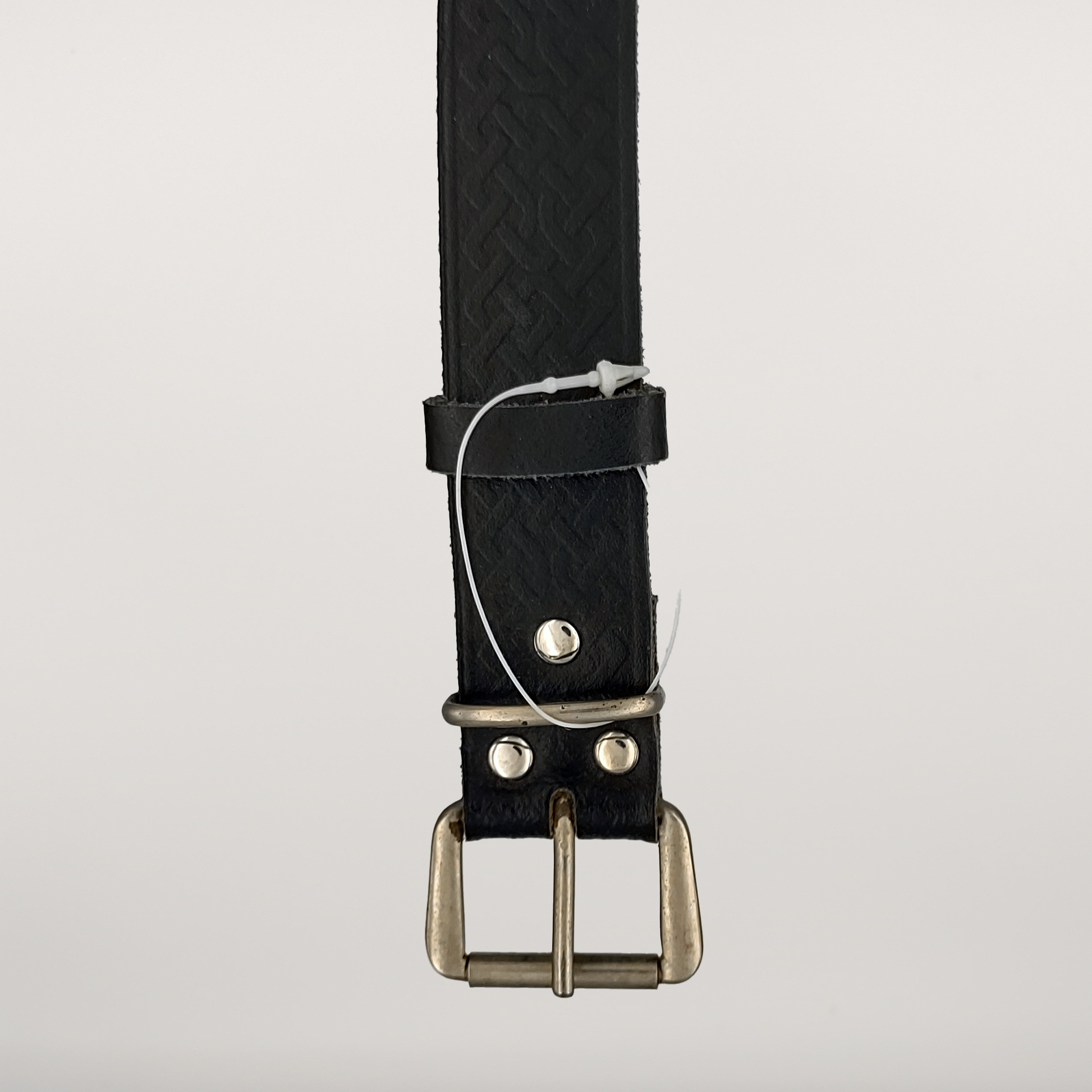 Aito Joutsassa valmistettu Aarno-vyö | kapea, erittäin kestävä rullasolki | ~3mm paksua, tukeva nahkaa | kuviointi vaakuna | leveät 3,0 cm | 1,2"